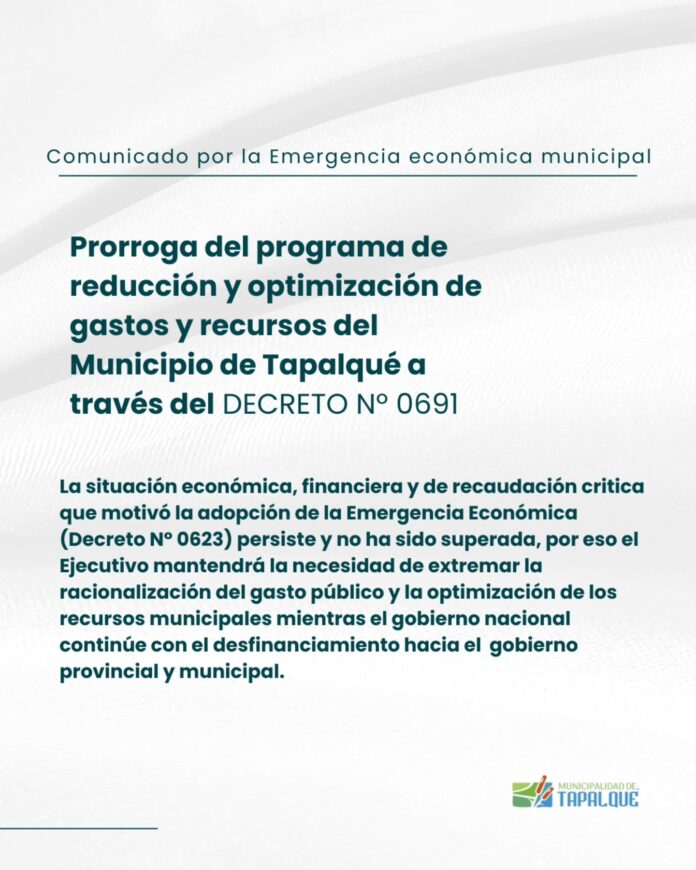 “La situación económica, financiera y de recaudación critica que motivó la adopción de la Emergencia Económica persiste y no ha sido superada, por eso el Ejecutivo mantendrá la necesidad de extremar la racionalización del gasto público y la optimización de los recursos municipales mientras el gobierno nacional continúe con el desfinanciamiento hacia el gobierno provincial y municipal”, explicaron desde la comuna a través de un comunicado.