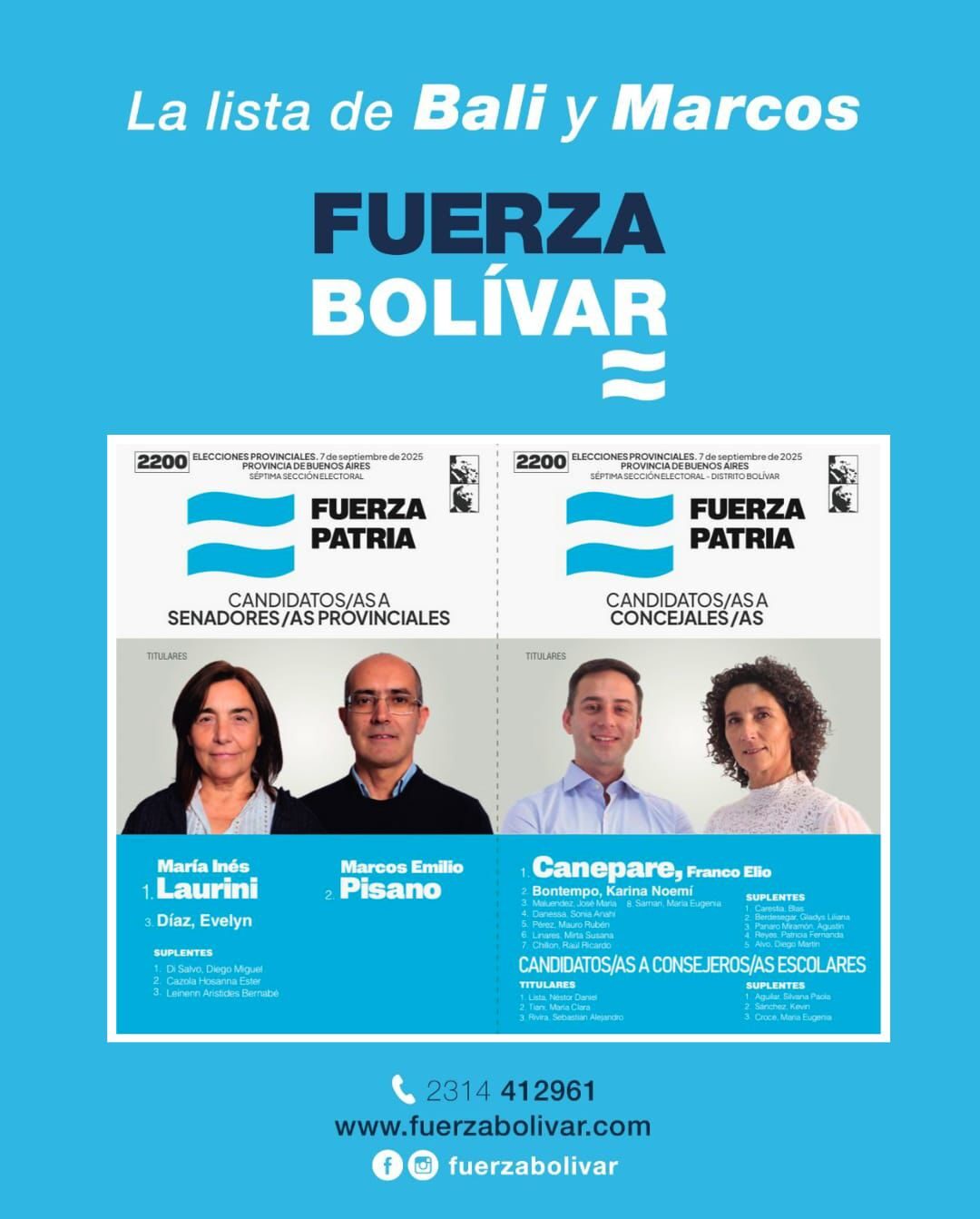 Y agregaron: «Esta es una boleta celeste y blanca, que lleva dos cuerpos, representando al frente 2200 Fuerza Patria en Bolívar es la única lista con representación seccional».