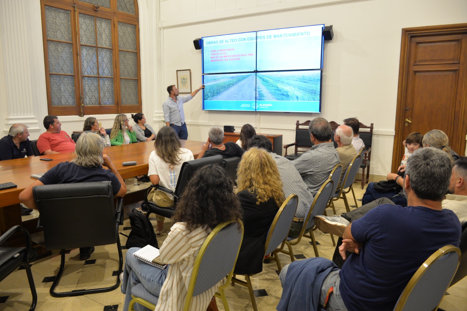 También se enumeró el listado de obras pautadas para el 2026, varias de las cuales ya tuvieron sus actos de licitaciones correspondientes y otros están a próximos a concretarse. Vale destacar al respecto, que esos trabajos fueron acordados a partir del diálogo sostenido de la gestión municipal con productores e instituciones, marco en el que también se ponderó cómo ha cambiado el régimen de lluvias en el Partido.