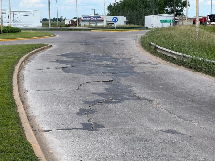 La mayor preocupación del alcalde son pozos y el deterioro que presenta la calzada en la rotonda de ingreso al distrito. Tal como se puede observar en las fotos que grafican esta nota, son de dimensiones grandes y profundas.