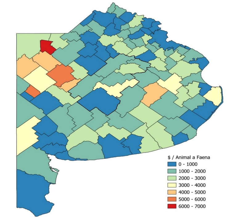 De la región, Tapalqué es el único municipio que figura en el ranking de los diez municipios con los valores más altos de esta tasa, ubicándose en el puesto número 9, con un costo de $3.496 por cabeza de ganado.